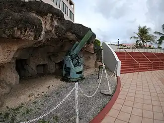 The Dungcas Beach Defense Guns are an old World War II Japanese fortification in the United States territory of Guam. It consists of a tunnel dug in the coral limestone of the cliffs overlooking the beach on the northeast east side of Hagåtña Bay on the west side of the island. The tunnel has two guns mounted at openings facing the beach. This fortification was built by the 48th Independent Mixed Brigade of the 29th Division of the Imperial Japanese Army, during its occupation of the island 1941–44. The guns from this position were probably fired on landing Allied forces during the 1944 Battle of Guam, in which the United States retook the island.[2]