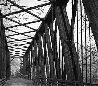 The Dungeness River Bridge is the centerpiece of Railroad Bridge Park near the town of Sequim, Washington. It crosses the Dungeness River. The bridge was first constructed by the Seattle, Port Angeles, and Western Railway, a subsidiary of the Chicago, Milwaukee, St. Paul and Pacific Railroad (also known as the Milwaukee Road) in 1916. Because of the ready availability of timber, the bridge was built of wood. This first bridge was replaced in 1930. The new bridge was also built of timber, and like its predecessor, is a through Howe truss 156 feet long and 22 feet high. Two wooden trestles are on the east and west approaches.[1]