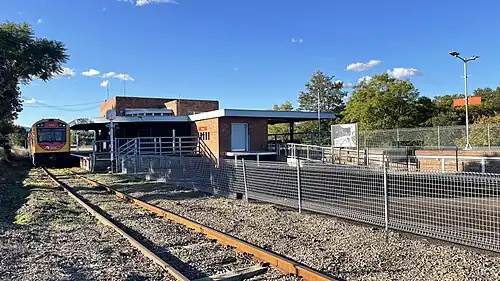 Dungog has an island platform with two faces. It also has a passing loop to the east of the station. It is the terminating point for Hunter Line services from Newcastle and a stopping point for NSW TrainLink XPT services. There are five local services to/from Newcastle on weekdays, with three per day on weekends and public holidays.[5] Each day northbound XPT services operate to Casino and Brisbane, with two southbound services operating to Sydney.[6] This station is a request stop for the southbound Casino XPT, so this service stops here only if passengers booked to board/alight here.