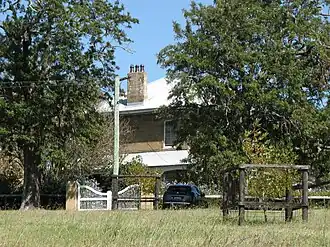 The main homestead is a large two storey residence which commenced construction in 1830 and was completed by 1833. It displays the symmetry of a classical Georgian (Regency) building. A flagged verandah enclosed in part extends around all four sides. Original columns replaced earlier this century by unsympathetic posts with Art Nouveau brackets detail. Sash windows and door openings have a raised stone surround. The interiors, consisting of four rooms on two levels, are largely intact featuring fine cedar joinery and an original cantilevered stone staircase off the central ground floor entrance hall.[1]