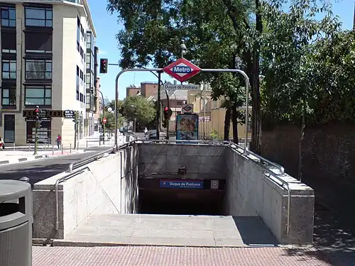 Duque de Pastrana [ˈduke ðe pasˈtɾana] is a station on Line 9 of the Madrid Metro, under the Plaza Duque de Pastrana ("Duke of Pastrana Place"). It is located in fare Zone A.[1]
