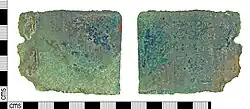 The museum's collections cover the prehistoric, Ancient Greek, Roman, early medieval, medieval and post-medieval periods.[14] Items of interest include the Bronze Age Houghall Sword, a Ewart Park sword from 700–900 BC found on the Houghall campus of East Durham College just south of Durham in 1996;[15] the internationally important Oswald-Plique collection of over 4,500 pieces of Samian ware, acquired by Birley in 1950, which formed a reference for Oswald's 1936–7 Index of Figure Types on Terra Sigillata and Stanfield and Simpson's 1958 Central Gaulish Potters, both of which remain standard reference books;[16][17] Roman artefacts from the Victorian excavations at Binchester and Birley's 1930s work at Benwell on Hadrian's Wall;[18] and the Lanchester Diploma, the first complete Roman fleet diploma to be found in Britain, discovered in Lanchester, County Durham, by a detectorist in 2016.[17][19][20]