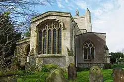 The nave of the Church of England parish church of St Andrew may have been built in the 12th century. The south aisle was added early in the 13th century. It is linked with the nave by a three-bays arcade. It was followed a few years later by the south chapel, which is alongside the chancel and linked to it by a two-bay arcade. The chancel arch was built in the middle of the 13th century. The north aisle, also of three bays, was added about 1340, followed by the Decorated Gothic north chapel, which is alongside the chancel and linked with it by a two-bay arcade.[2] On the floor of the north chapel are monumental brasses commemorating Claricia Wyndesor – quare fieri fecit istam capellam (why did he make this chapel) (died 1403) and her husband John York fundator istius Ile (founder of Ile) (died 1404).[3]