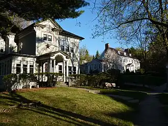 - Hettinga and Aucutt's NRHP nomination among the references above lists all the buildings and describes the first owners.