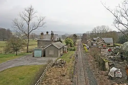 The station had a goods shed (which still remains as the only remaining example of one of many similar goods sheds on the Wearhead extension of the line) and a number of sidings however the lack of run-round facilities meant that all shunting had to be carried by a rope attached to the locomotive.[2]