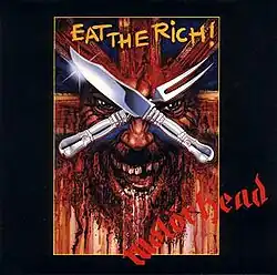 "Eat the Rich" is a song by British heavy metal band Motörhead. It was released as a single in 1987, in 7" and 12" vinyl pressings. Both formats featured the B-side "Cradle to the Grave", and the 12" also included "Just 'Cos You Got the Power".
