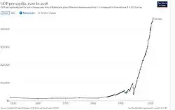 The use of the American model had begun in the 1920s.[113] After 1950, Germany overtook Britain in comparative productivity levels for the whole economy, primarily as a result of trends in services rather than trends in industry. Britain's historic lead in productivity of its services sector was based on external economies of scale in a highly urbanized economy with an international colonial orientation. On the other hand, the low productivity in Germany was caused by the underdevelopment of services generally, especially in rural areas that comprised a much larger sector. As German farm employment declined sharply after 1950 thanks to mechanization, catching-up occurred in services. This process was aided by a sharp increase in human and physical capital accumulation, a pro-growth government policy, and the effective utilization of the education sector to create a more productive work force.[114]