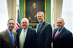 Flynn (far right) in 2016 with Congressman Stephen Lynch, Flynn's father Raymond Flynn, and Governor Charlie Baker