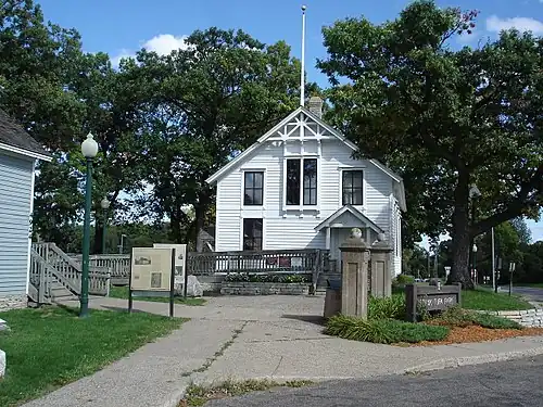 In 1859, when Edina was still the western part of Richfield Township, residents of what would become northern Edina organized school district 17 and built the district's first school.[4] It was a one-room, white frame building built at Code's Corner, which today is occupied by Normandale Lutheran Church at West 62nd Street and Minnesota State Highway 100. At the time it was evident that Edina was still a farming town, since school vacations coincided with spring planting and fall harvesting so the children could help in the fields.