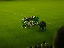 Hearts were relegated to the Championship in 2020 after the 2019–20 season was curtailed by the Covid-19 pandemic in Scotland.[20] In the semi-finals of the 2019–20 Scottish Cup, which were delayed until the autumn by the pandemic,[21] Hearts won 2–1 after extra time against Hibs.[22] Hearts were promoted back to the top flight in 2021, before winning the 2021–22 Scottish Cup semi-final against Hibs.[23]