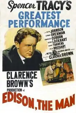 Edison, the Man is a 1940 biographical film depicting the life of inventor Thomas Edison, who was portrayed by Spencer Tracy. Hugo Butler and Dore Schary were nominated for the Academy Award for Best Writing, Original Story for their work on this film. Typical of most Hollywood biopics, much of the film fictionalizes or exaggerates the real events of Edison's life.[2]