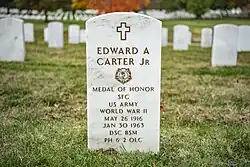 Edward Allen Carter Jr. (May 26, 1916 – January 30, 1963) was a United States Army sergeant first class who was wounded in action during World War II. He was posthumously awarded the Medal of Honor, the nation's highest military decoration for valor, for his actions on March 23, 1945, near Speyer, Germany.[1][2]