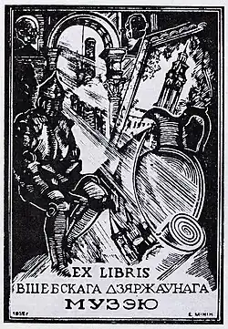 Efim Minin was a graphic artist, portraitist, and exlibrist. From 1920 he worked mainly in woodcut technique. The leading theme of his work was urban landscapes of Vitebsk.