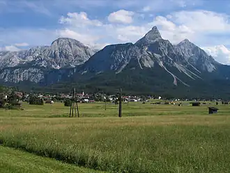 ![]() The Sonnenspitze from the Ehrwald Basin to the north | |