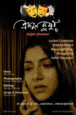 Based on a short story by Mohit Ray, Ekjon Jhumur ( Jhumur, the girl) is the story of Jhumur,(Locket Chatterjee )a self-respectful, independent-minded young lady of today in her late twenties. Her consciousness of life, morality and her own entity are intermingled with theater. The undaunted spirit places her above the nitty-gritty of daily life. She seeks emancipation through her medium of self-expression - the theater.[1]