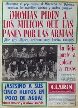 ![]() Front page of Clarín's final number, published on 11 September 1973. Its circulation was minimal as the military intervened Clarín's headquarters during the delivery process | |