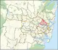 On its current boundaries, Lane Cove encompasses the suburbs and localities of Artarmon, Chatswood West, East Ryde, Gladesville, Gore Hill, Greenwich, Henley, Hunters Hill, Huntleys Point, Lane Cove, Linley Point, Longueville, Macquarie Park, Monash Park, North Ryde, Northwood, Putney, Riverview, Ryde, St Leonards, Tambourine Bay and Woolwich.[1][2][3]
