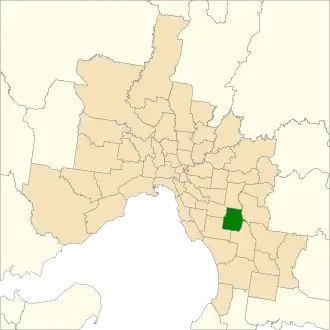 Location of Mulgrave (dark green) in Greater Melbourne