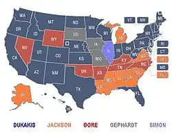 - ^ "US President - D Convention Race - Jul 18, 1988". Our Campaigns. Retrieved 2012-01-04.