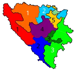 | Federation of Bosnia and Herzegovina | 1st | Una-Sana Canton and Canton 10 | 3 |