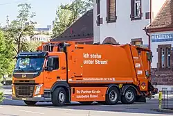 In Europe, as of 2020, electric garbage trucks have been ordered by Geneva,[50] Basel,[51] Frankfurt,[52] Duisburg[53] and other cities.[54] Traditional garbage trucks have extremely high fuel consumption, higher than American 18 wheelers achieve on most routes. Using an electric drive instead of a diesel engine dramatically lowers energy consumption, yet it is still around 1,900 Wh/km or 3,060 Wh/mi. With a 340-kWh battery,[50] such a truck can still achieve a range of over 177 km (110 miles) before it needs recharging.