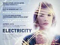 Electricity is a 2014 British film directed by Bryn Higgins, starring Agyness Deyn, Lenora Crichlow and Christian Cooke. the film is about the journey seen through the eyes of a young woman with epilepsy.[1] Electricity is an adaptation of the 2006 novel by Ray Robinson. It was produced in Saltburn-by-the-Sea in June 2013;[2] some filming was carried out in London and in North East England.[3] The film was released on 12 December 2014.