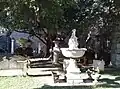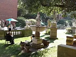 The garden includes various sculptures, many of which are taken from the collection of Allan Reiver, who operated the neighboring Elizabeth Street Gallery.[1][5] A gravel path winds through the garden. Adjacent to the path is a balustrade salvaged from Lynnewood Hall, a mansion in Elkins Park, Pennsylvania.[1] There are wrought-iron chairs and tables, birdbaths, and a set of columns.[5] The space also has over 1,200 plants,[3] in addition to a copper gazebo designed by Frederick Law Olmsted.[1][6]