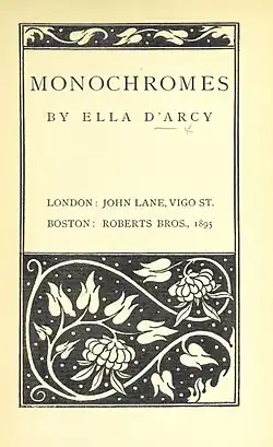 Ella D'Arcy (Constance Eleanor Mary Byrne D'Arcy) (23 August 1857 – 5 September 1937)[1] was a British short fiction writer in the late 19th and early 20th century.
