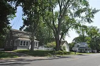 The Elm Street Historic District is a rural historic district in southern Hatfield, Massachusetts. It encompasses a landscape that has seen agricultural use since 17th century colonial days, including fields now used for tobacco farming, and historic properties located along five roads: Elm Street, Scotland Road, Sunset Road, Brook Hollow Road, and Little Neponset Road. The district is bounded on its south by the Connecticut River, on its east and north by the Mill River, with a small portion of land border in the northeast which cuts off a large meander in the river. This section, near the junction of Elm and Prospect Streets, is also where this district abuts the Mill-Prospect Street Historic District, which runs north along Prospect Street, and its eastern boundary abuts the Hatfield Center Historic District. Its western boundary is roughly a north-south line in the area of the junction of Elm and Dwight Streets.[2]