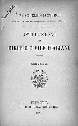 Cover page of his book Istituzioni di diritto civile italiano (1904)