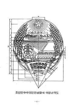 - ^ a b 조선민주주의인민공화국 국장법 [National Emblem Law of the Democratic People's Republic of Korea] (PDF). Law Code of the Democratic People's Republic of Korea. Supreme People's Assembly. 2012. p. 41.