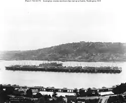 There were other wooden ship designs, many unique to regional yards, and a large wooden fleet was built, one that has been called by some the "white elephant" fleet.[18] Some were burned in accidents; however others were burned after the war to recover valuable metals. For example, in 1922 Western Marine and Salvage Company (WM&SC) of Alexandria, Virginia bought 233 such ships for $750,000 so that the ships could have machinery removed in Alexandria and then towed back to the anchorage on the Potomac and burned to regain remaining scrap. That activity brought protests from watermen and the operation was moved in 1924 to 566 acres (2.29 km2) of company owned farmland surrounding Mallows Bay in Maryland.[17]