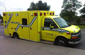 In addition to regular EMS, many jurisdictions also operate non-emergency patient transport services. In many jurisdictions, there are also companies who specialize in non-emergency patient transfers. Such companies have their own vehicles, which are similar to ambulances and carry some similar patient care equipment. These services can relieve the workload on public EMS through the elimination of some, or most, of the non-emergency transfer volume,[27] and some provide service to the public that is of the highest standard. In many cases, such services are small private businesses, using second-hand ambulances which have been retired from public EMS service, while others use vehicles expressly built for their purposes.[28] There has, however, been some controversy, in some jurisdictions, with respect to the operating procedures of some (but not all) of these services. In some cases, the vehicles are often made to look as much like EMS ambulances as possible,[29] even retaining emergency lights and sirens (which they are forbidden by law to use), and incorporating the word "paramedic" (this term is not protected in Canada yet), variations on "EMS" (in some cases, "event medical services") or spelling variations of "ambulance", such as "ambu-lans", or using the Star of Life logo on their vehicle markings. These services are not generally licensed, or required to meet any recognized standard. These services generally attempt to recruit staff who meet provincial EMS qualification standards, but are under no legal obligation to do so. Such services are not covered by provincial health insurance, operate on a fee-for-service basis, and are not considered to be a legitimate part of mainstream EMS.[30]