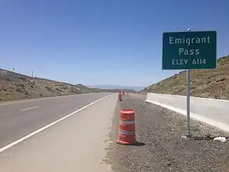 Emigrant Pass is a mountain pass in Eureka County, Nevada, United States. It originally carried the California Trail over the Emigrant Hills of northern Eureka County, reaching a peak elevation of 6,125 feet (1,867 m).[2] Interstate 80 now follows the California Trail's route over the pass. The small town of Primeaux is just west of the pass.