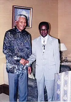 In April 1997, Dungia was tentatively assigned as a diplomatic adviser to the Cabinet of Dr. Bizima Karaha[7] who served as Minister of Foreign Affairs. With the overthrow of the Mobutu government on 17 May 1997, the new president Laurent Kabila appoints Dungia Goodwill Ambassador. He subsequently goes on mission to South Africa to meet with President Nelson Mandela. Upon his return, Dungia was appointed Chief of the diplomatic mission in Pretoria, following the arrest of its former head shortly before the trip to South Africa.
