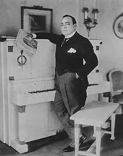 Caruso also appeared in two motion pictures. In 1918, he played a dual role in the American silent film My Cousin (entirely restored in July 2021[49]) for Paramount Pictures. This film included a sequence depicting him on stage performing the aria Vesti la giubba from Leoncavallo's opera Pagliacci. The following year Caruso played a character called Cosimo in another film, The Splendid Romance. Producer Jesse Lasky paid Caruso $100,000 (US$2.09 million in 2024[24]) each to appear in these two efforts but My Cousin flopped at the box office, and The Splendid Romance was apparently never released. Brief candid glimpses of Caruso offstage have been preserved in contemporary newsreel footage.