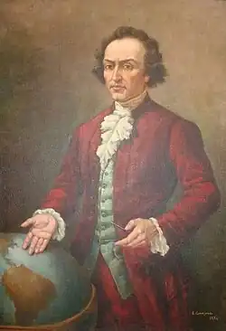 Upon his return in 1930, he was appointed professor of the Fine Arts School of Quito,[3] in that decade he painted several portraits. In 1935, the municipalities of the Republic of Ecuador, decided to give an oil painting by Eloy Alfaro to the Municipal Council of Quito, a portrait painted by the artist.[8] In 1936, on the Bicentennial of the arrival of the Spanish-French Geodesic Mission to Ecuador and as a member of the Comité France-Amerique, he painted the Portrait of Pedro Vicente Maldonado, which is in the Alberto Mena Caamaño Museum, known as the "Wax Museum", in Quito.[3]