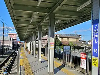 The station has a single unnumbered island platform, with the station building built onto one end of the platform. The station building has automated ticket machines, and automated turnstiles which accept the NicePass smart card, as well as ET Card, a magnetic card ticketing system. The station is unattended.