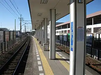 The station has a single island platform, connected to a two-story wooden station building by a level crossing. The station building has automated ticket machines, and automated turnstiles which accept the NicePass smart card, as well as ET Card, a magnetic card ticketing system. The station is attended.
