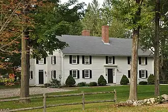 The Ephraim Buck House is a historic First Period house in Wilmington, Massachusetts. Construction of the house has been dated to c. 1704 by deeds, although local histories suggest part of it may be older. Analysis of its framing suggests that it may have been built in phases: the first phase would have included the front half of the house, along with a central chimney, while the back portion of the house, along with a new chimney, would have been added later in the 18th century. The house is distinctive for having "Beverly jogs" on both sides of the house; this is a portion of the rear section that projects from the side of the house.[2] The house was supposedly built by Roger Buck, an early colonial settler, and his son Ephraim, and was originally occupied by two families. Its exterior was restyled c. 1770 to give it Federal period styling, including a front door entry with 3/4 length sidelight windows and an entablature.[3]