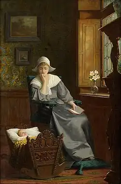 He began his artistic education as a private student of Andreas Müller then, in 1863, enrolled at the Kunstakademie Düsseldorf, where he studied with Rudolf Wiegmann, Heinrich Mücke, Karl Ferdinand Sohn and Julius Roeting. From 1868 to 1872, he was a private student of Wilhelm Sohn.[2] Most of his paintings were genre scenes, but he made his living doing portraits, including many of his fellow artists.