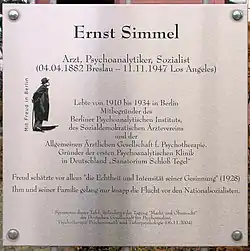 1. ^ a b Veronika Fuechtner, 'Berlin Soulscapes: Alfred Döblin talks to Ernst Simmel', ch. 1 of Berlin Psychoanalytic: Psychoanalysis and Culture in Weimar Republic Germany and Beyond, University of California Press, 2011, pp.28-31