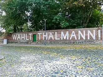- ^ File: Vote Thälmann! Lettering Görlitz Bergstraße.jpg|mini|Lettering from the Ernst Thälmann film; Görlitz, Bergstrasse