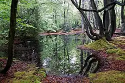 After that point population growth caused the proportion of woodland to fall steadily until the arrival of the Black Death, in 1348, killed between a third and a half of England's population, leading to a long term stabilisation of the extent of woodland. Similarly, various pressures led to areas being removed from the legal Forest of Essex and it ceased to exist as a legal entity after 1327,[26] and after that time Forest Law applied to smaller areas: the forests of Writtle (near Chelmsford), long lost Kingswood (near Colchester),[24] Hatfield, and Waltham Forest.