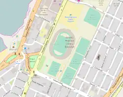 In October 1987, the stadium was a host for the 1987 FIFA World Youth Championship, where the national teams of West Germany, Bulgaria, United States and Saudi Arabia, all of Group D, played 6 games. The stadium also hosted the quarter-final match between West Germany and Scotland.[5] The average audience attendance was 8,417. A large investment had to be made for the stadium to host the event, with improvements to field number 5, the stands and scoreboard.[25]