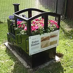 Nothing now remains of Eston station and its site is now occupied by modern housing. The trackbed of the spur from the Normanby Branch has been made into a footpath and can be walked from the site of the old level crossing at Flatts Lane to Station Road in Eston. The Normanby Branch itself is also now a footpath, the South Bank Walkway, which links Flatts Lane Country Park to South Bank.[7] The station is commemorated by a small locomotive-shaped planter with an information board, installed in 2010 near the old level crossing by the Eston Residents Association.