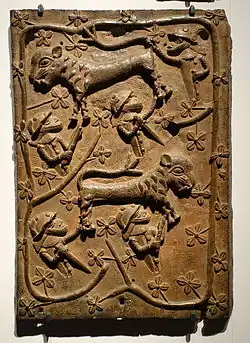 The Ethnologisches Museum was founded in 1873 and opened its doors in 1886 as the Royal Museum for Ethnology (German: Königliches Museum für Völkerkunde), but its roots go back to the 17th-century Kunstkammer of the rulers of Brandenburg-Prussia.[2] As the museum’s collections expanded in the early 20th century, the museum quickly outgrew its facility in the center of Berlin on Königgrätzer Straße (today named Stresemannstraße).[3] A new building was erected in the suburb of Dahlem to house the museum’s store rooms and research collections. In World War II, the main building of the museum was heavily damaged. It was demolished in 1961, and the buildings in Dahlem (in what was then West Berlin) were reconfigured to serve as the museum's exhibition spaces.