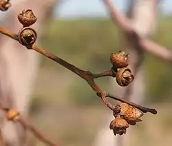 • Eucalyptus leucophloia subsp. euroa L.A.S.Johnson & K.D.Hill[12] has the valves of the fruit prominently protruding above the rim;