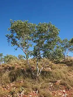 Subspecies leucophloia is found in gullies and on hills and plains in the western Pilbara region of Western Australia where it grows in skeletal soils over sandstone.[14] Subspecies euroa occurs in the central parts of the Northern Territory between Katherine, Tennant Creek and the southern part of Arnhem Land[4] and into north western Queensland[15] between Mount Isa, Cloncurry and Dajarra.[6]