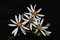 Eurybia jonesiae, commonly known as Jones's aster or Almut's wood aster, is a North American species of herbaceous perennial native to the Southeastern United States, primarily in the state of Georgia with a few populations in eastern Alabama. It is found mostly in the Piedmont Region in rich oak-hickory-pine forest. Within these rich woods, it has an affinity for moist soils with habitats that include ravines, rocky ridges, and wooded slopes in the vicinity of rivers and streams. Due to its restricted range it is considered threatened by the Nature Conservancy. It has often been misidentified as Eurybia spectabilis and was declared a separate species quite recently in 1988.[3] The flowers emerge in the late summer and persist into the fall bearing cream-coloured ray florets that become purple and yellow disc florets.